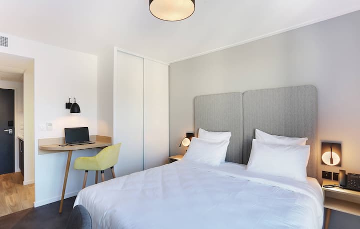 Pobjegnite u Toulouse i uživajte u sljedećem odmoru! Naš udoban jednosobni stan za 4 osobe, koji se sastoji od 2 susjedna studio apartmana, idealno se nalazi u srcu Toulousea. Provedite dane šetajući rijekom Garonne ili posjećujući svoj grad. Nakon dana provedenog na otvorenom, naš je udoban prostor savršeno mjesto za opuštanje s obitelji i prijateljima.