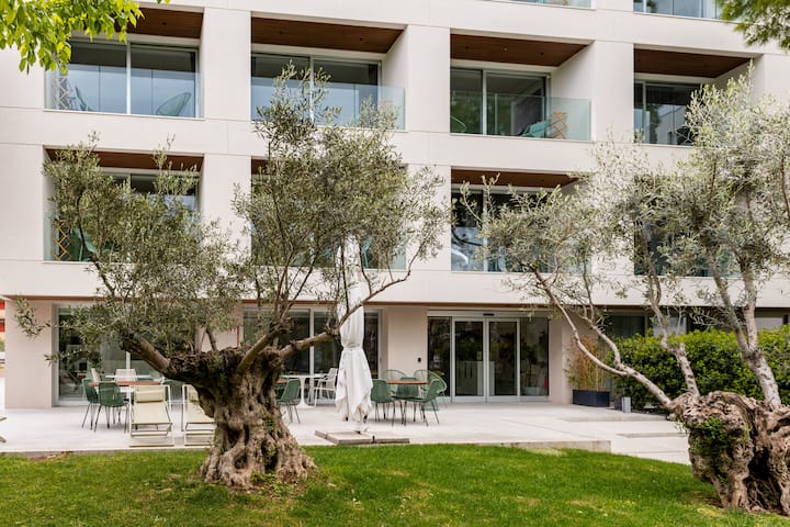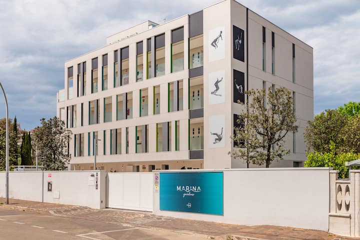 Imamo 17 apartmana s privatnom čajnom kuhinjom i organiziranim dnevnim boravkom, talijanskim namještajem, udobnim bračnim krevetima, kupaonicom s tušem, besplatnim toaletnim potrepštinama i vrhunskom posteljinom, pametnim televizorom i privatnim balkonom okrenutim prema prekrasnom i dobro uređenom privatnom unutarnjem vrtu!