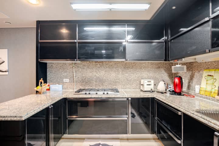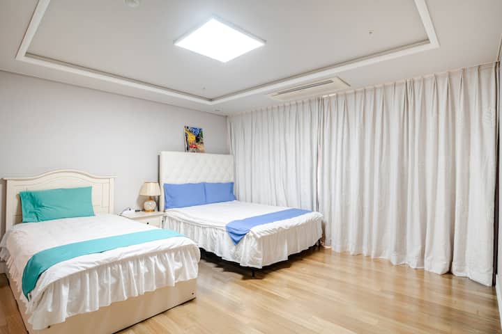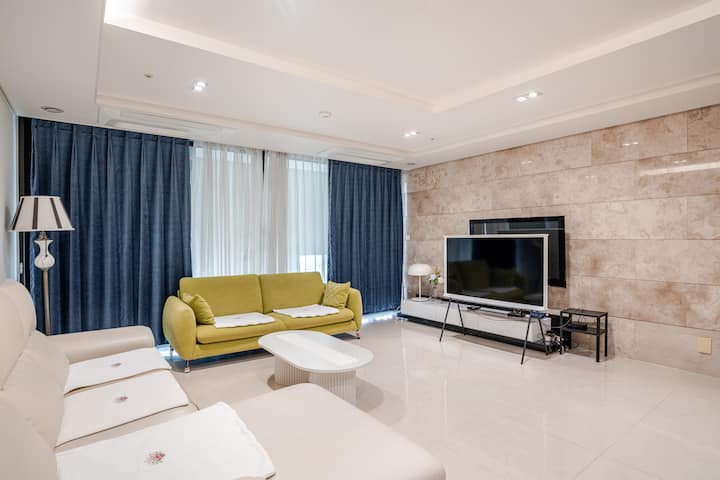 2400 kvadratnih stopa 4 spavaće sobe + 2 kupaonice 70 pyeong.4 sobe, 2 kupaonice. Pogled na more i grad s balkona, Netflix