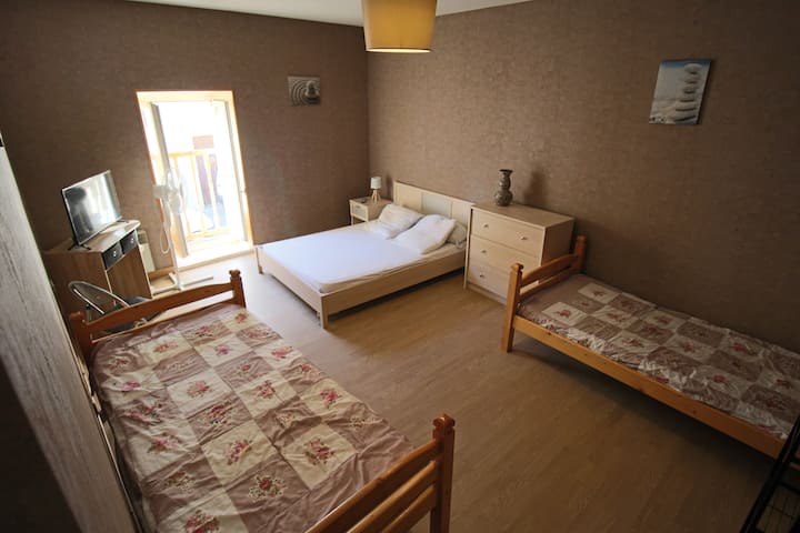 1 bračni krevet (1,4x2), 2 jednostruka kreveta