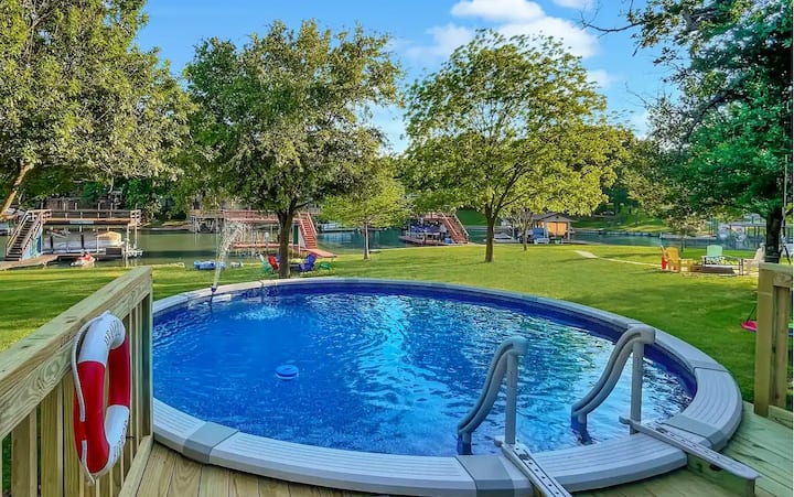 Dobro došli u naše utočište na jezeru Cedar Creek! Ovaj mirni objekt na obali jezera nalazi se izravno na velikom dubokom kanalu savršenom za kupanje, ribolov i izvlačenje vodenih plovila s vlastitim privatnim bazenom, privatnim dvokatnim pristaništem, dizalom za čamce i dizalom za jet-ski.