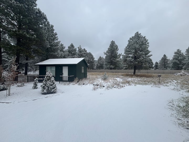 Drvena kuća s 1 spavaćom sobom; minijaturna kuća za goste u borovoj šumi