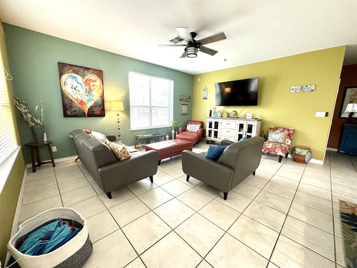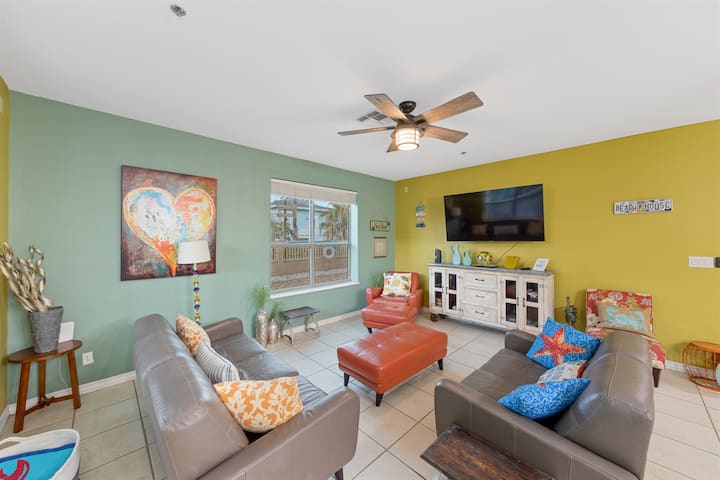 Prekrasna, Prostrani APARTMAN s bazenom u South Padre Island, Texas Ako ste u potrazi za mjesto za bijeg i uživati u ljepoti prirode uz ocean, ne tražite dalje od Casa de Colores! Primarna spavaća soba ima bračni krevet, a gostinjska soba ima 2 kreveta (2 bračna kreveta) s dovoljno prostora za obitelj od 6 osoba.