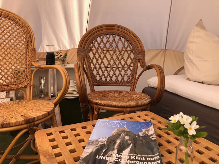 Moje ime je Helle i imam mali kafić na farmi na Møn. Na kraju vrta s pogledom na polja i Stege Nor uredio sam mali glamping s tri šatora. Puno mi znači da moji gosti imaju posebno iskustvo i opuste se u prekrasnom, ugodnom okruženju. To se odražava u rasporedu glamping šatora i kafića. Jedva čekam da vam pokažem Helles Garden.