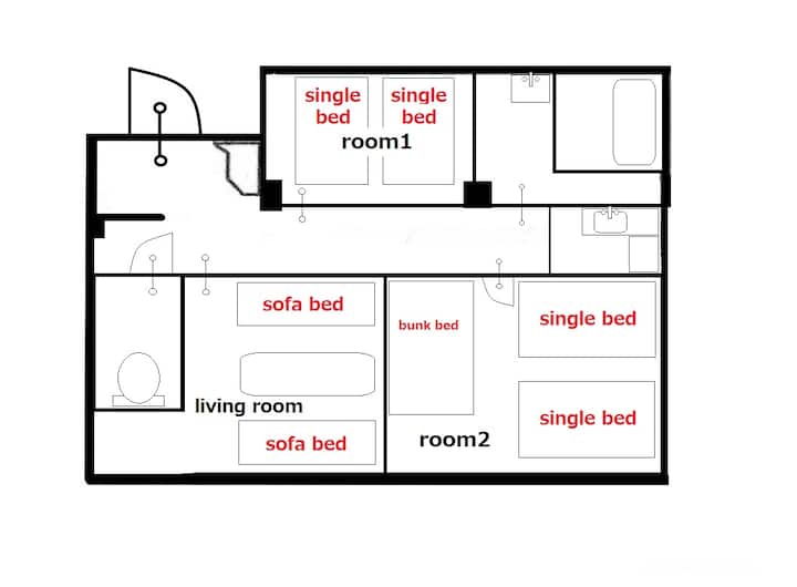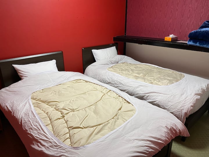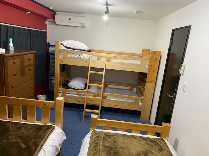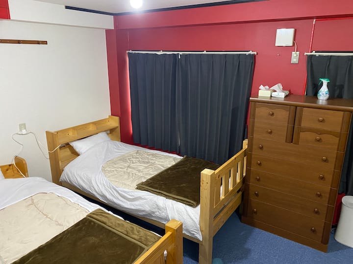 Soba 2F u zgradi stanara.Restorani na katu itd.Usred centra grada.Pješačka udaljenost do mnogih restorana i barova.