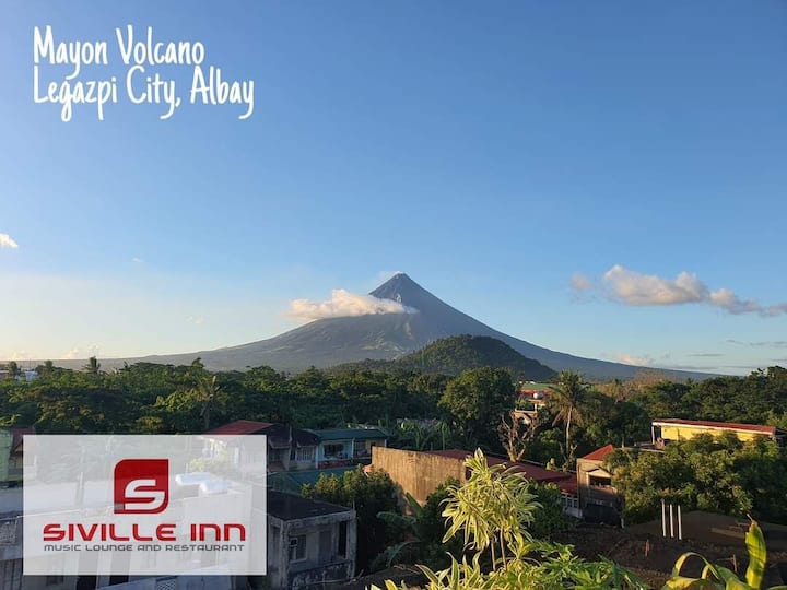 Soba u Legazpi Cityju – pogled na Mayon s terase na krovu