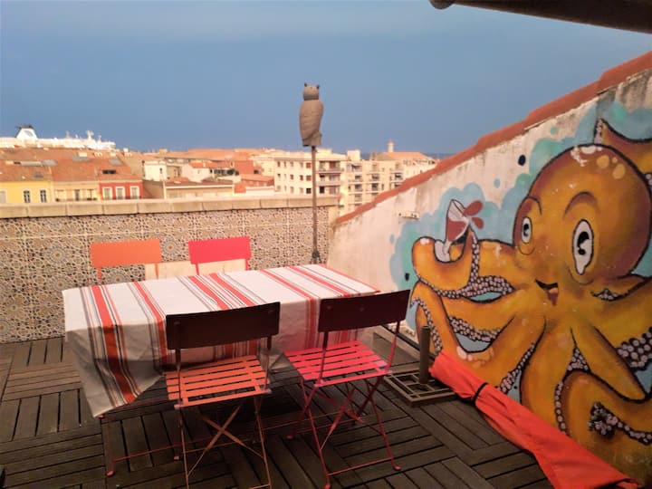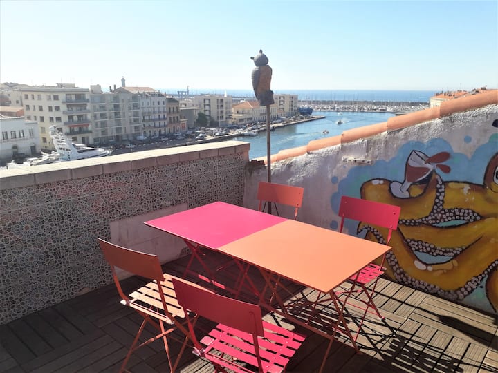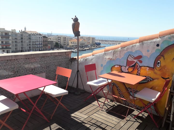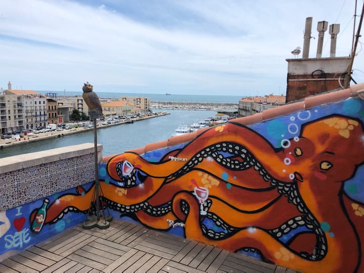 Nedavno smo se zaljubili u Sète, Sétois i Sétoises..... To je tako živahan, topao grad... u tren oka smo stekli prekrasna poznanstva. Nažalost, trenutačno ne možemo tamo živjeti, zato smo uzeli ovaj mali stan i što je prije moguće otići tamo. U međuvremenu ga iznajmljujemo kako biste mogli otkriti Sète uživajući u veličanstvenom pogledu s naše strane.