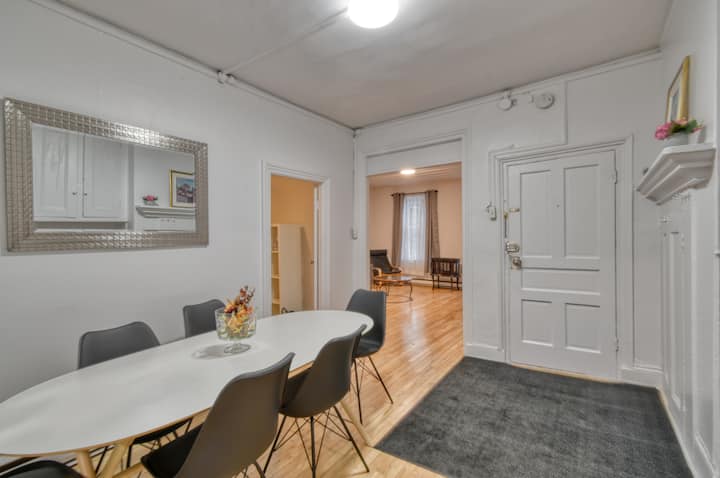 Sve glavne autobusne linije prolaze kroz to područje. Ako imate automobil, možete birati između 2 podzemna javna parkirališta (uz naknadu) (Indigo i drugo putem ulice Rue Jacques-Parizeau). Nekoliko parkova, uključujući Parc de L'Amérique-Française, Parc de la Francophonie, Parc de L'Esplanade i, naravno, Abrahamove ravnice. Udaljeni ste 5 ulica od poznate ulice Cartier u kojoj ćete pronaći sve što tražite. Trgovine, SAQ, terase, restorani i supermarket podzemne željeznice (za trgovinu namirnicama).