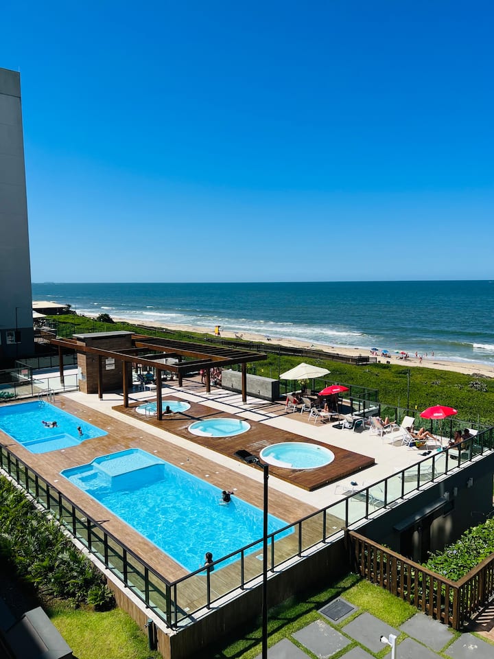 Prekrasan stan okrenut prema moru, kondominij Vila Açoriana Comfort Club nalazi se na pijesku, s bazenima, jacuzzijem, salonom, igraonicom, sportskim terenima, terenima za boćanje, kioscima s roštiljem, prostorom za kućne ljubimce, prostorom za djecu...