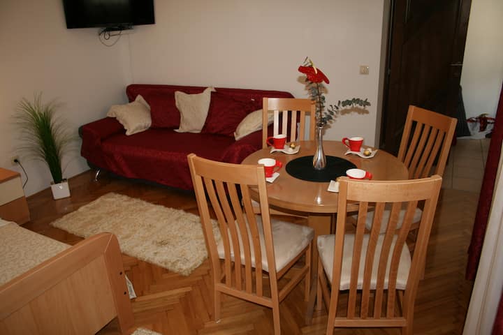 1 bračni krevet (1,6x2), 1 sofa