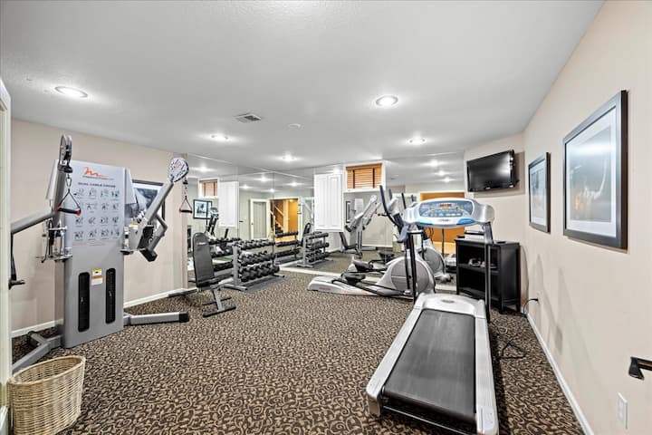 Za vježbanje su vam na raspolaganju pokretna traka, sobni bicikl, prostirka za jogu i utezi.