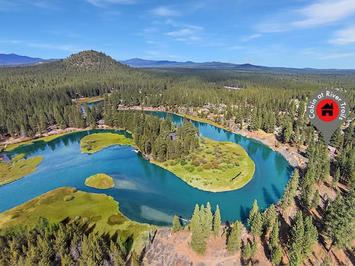 Mirna brvnara na obali rijeke Big Deschutes s masažnom kadom, peći na drva, klima-uređajem i stazama uz rijeku odmah ispred ulaznih vrata. Privatno, tiho i blizu Sunrivera, Mt. Prvostupnik i vrhunski ribolovac.