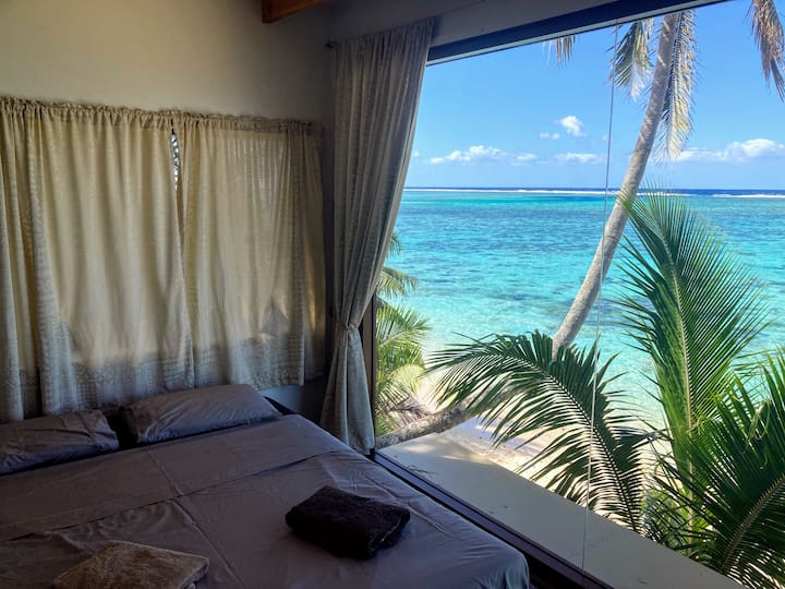 Udobna kuća na pješčanoj plaži s pogledom na razglednicu poput tirkizne lagune, jedno od najljepših mjesta na Rarotongi. Blistavo čista voda ispunjena malim tropskim ribama i nekim plavim morskim zvijezdama također je lako uočiti s vašeg kreveta, natkrivene terase i terase za sunčanje.