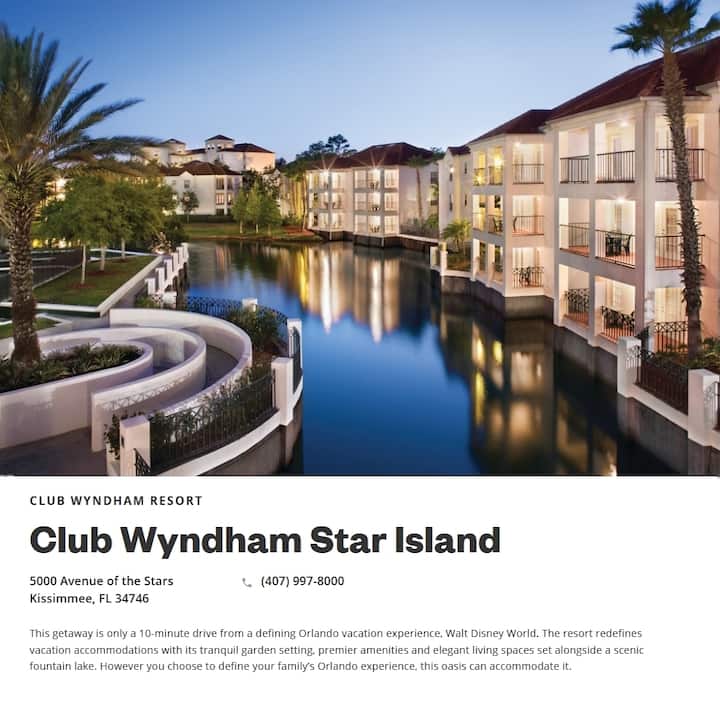2 Bedroom Club Wyndham Resort Star Island Disney