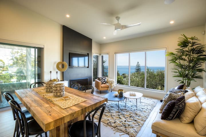 S prekrasnim pogledom na zaljev Jervis Bay i nalazi se odmah iza ugla od poznate plaže Hyams, ovaj luksuzni moderni dupleks savršen je za vaš odmor uz plažu.