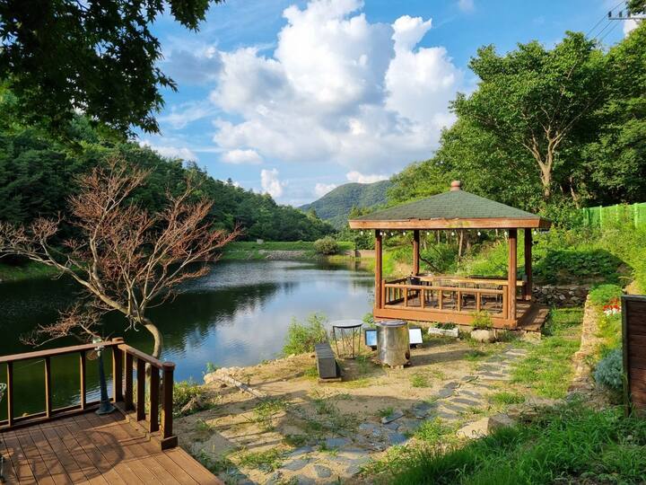 Aramnuri (samostalna kuća uz jezero u šumi, 1. i 2. kat, 60 pyeong, za privatnu upotrebu, veliki vrt, privatni prostor za roštilj)