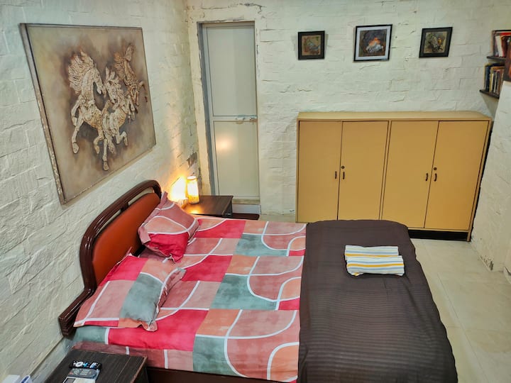 Udobna soba u boji slonovače, klima-uređaj, TV, privatna kupaonica, zasebni ulaz