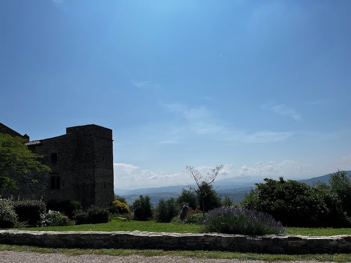 Srednjovjekovni toranj u Umbriji s bazenom