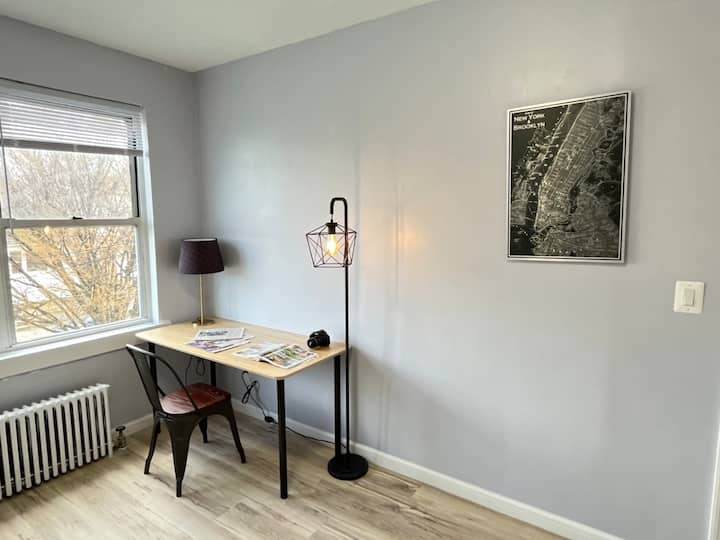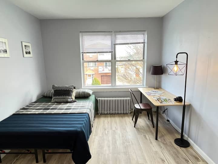 Ova udobna spavaća soba odlično je mjesto za opuštanje nakon dugog dana istraživanja New Yorka i njegovih skrivenih dragulja. Soba je opremljena krevetom u punoj veličini, radnim stolom, stolicom i ormarom.