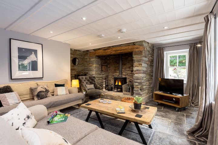 Prekrasno renovirana, velika nekretnina s 5 spavaćih soba i 4 kupaonice s plamenikom u dnevnom boravku. Objekt prikladan za pse. Samo 1 minutu vožnje do plaže Watergate Bay ili lagane 15-minutne šetnje seoskom stazom, nakon čega slijedi cesta B.