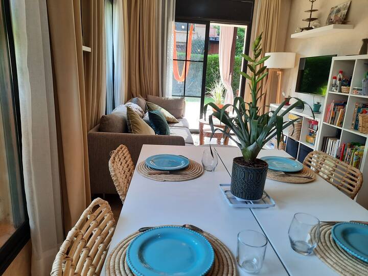 Apartman s vrtom i bazenom u obiteljskom naselju