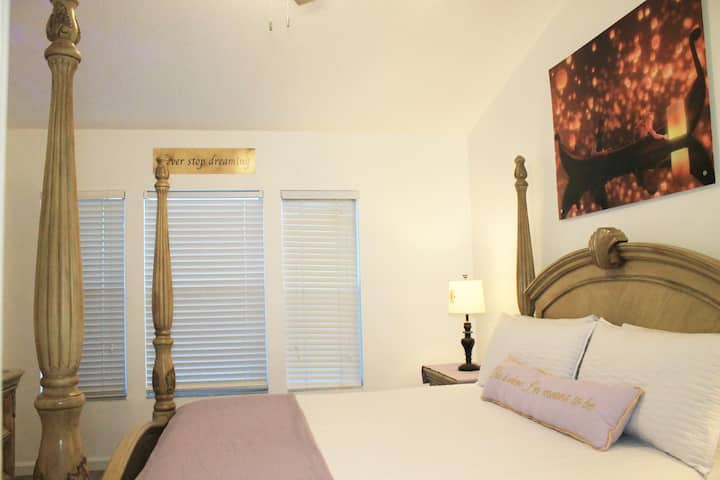Uživat ćete u ovom elegantnom smještaju, samo 15 minuta udaljenom od čarobnog svijeta Disneyja! Povedite cijelu obitelj i doživite uzbuđenje našeg renoviranog doma i bazena. Zašto se zadovoljiti skučenim hotelskim sobama kad možete imati obilan prostor po djeliću cijene? Kuhajte u našoj kuhinji, zapljusnite u našem privatnom bazenu i uživajte u udobnosti spavaće sobe s bračnim krevetom u prizemlju, spavaće sobe s bračnim krevetom na katu i spavaće sobe s bračnim krevetom na katu. Svaka soba ima vlastitu kupaonicu. Čeka vas nezaboravan boravak!