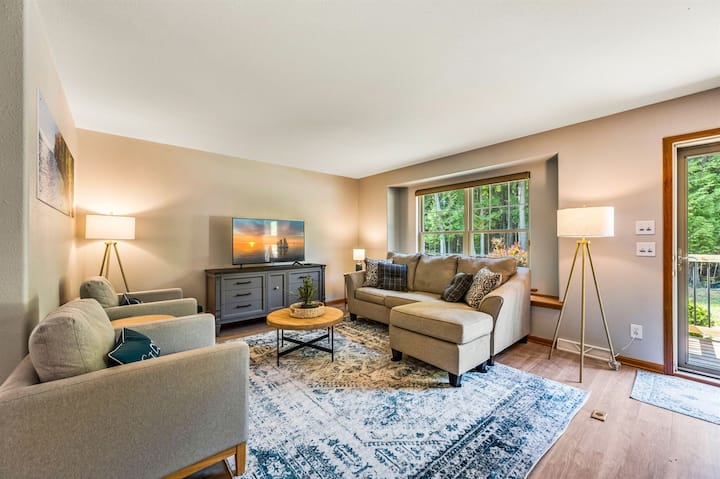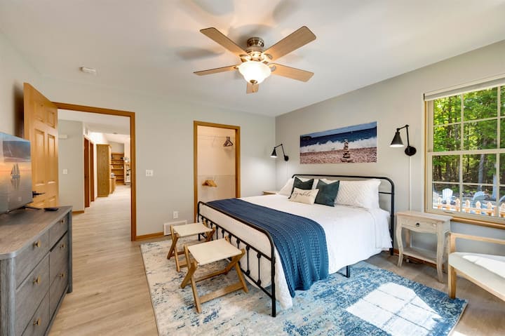 Gosti će imati cijeli prostor samo za sebe, kao i puni pristup privatnom šumovitom okruženju od 4,5 hektara koji nudi samoću i spokoj samo nekoliko minuta od srca zaljeva Sister Bay. Potpuno opremljena kuhinja s uređajima od nehrđajućeg čelika olakšava vrijeme obroka, dok udoban plinski kamin i montirani SmartTV pružaju toplo i ugodno mjesto za opuštanje nakon cjelodnevne avanture. Prostorija za sunčanje s plišanim sjedalima i namjenskom radnom stanicom pruža miran kutak za čitanje, opuštanje ili druženje na poslu. Za malo zabave otiđite u grijanu garažnu igraonicu u kojoj ćete pronaći bazen, stolni nogomet, stolni tenis i pop-a-shot. Vani uživajte u večerima oko ognjišta sa stolicama Adirondack i štapićima za prženje ili iskoristite daske za veslanje, prsluke za spašavanje, stolice za plažu i rezance za bazen za zabavu na suncu. Ograđena staza za pse dočekuje četveronožne goste, a parkiranje izvan ulice bit će ugodno i nezaboravno.