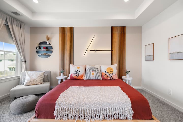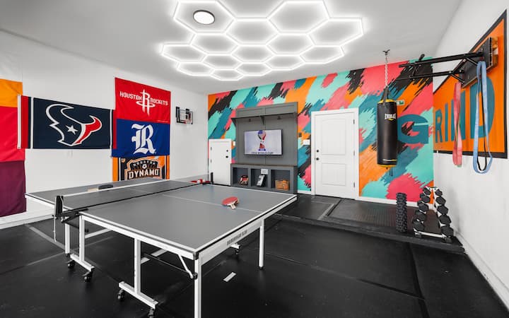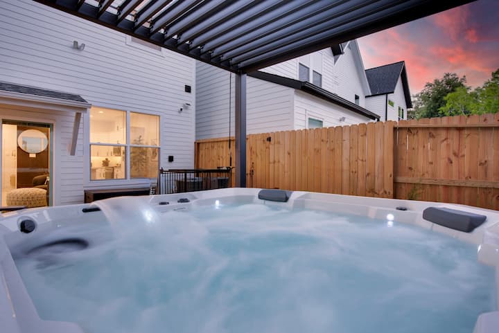 Opustite se u privatnoj hidromasažnoj kadi koja je natkrivena i dostupna tijekom cijele godine. Landing Pad – moderan smještaj s 3 spavaće sobe, 2 kupaonice i WC-om, 6 kreveta, izgrađen za udobnost. Idealno za obitelji, poslovna putovanja i manje grupe (do 12 gostiju). Smješten na mirnoj ulici 10 min do centra grada, 5 min do Medicinskog centra i manje od 5 milja do stadiona NRG (domaćin Svjetskog prvenstva 2026.). Uživajte u ognjištu, roštilju, brzom Wi-Fi-ju, pametnim televizorima i potpuno opskrbljenoj kuhinji. Jednostavan samostalni dolazak, besplatan parking i podrška Superhosta. Zabave i događanja nisu dozvoljeni.