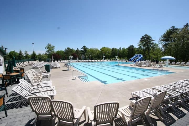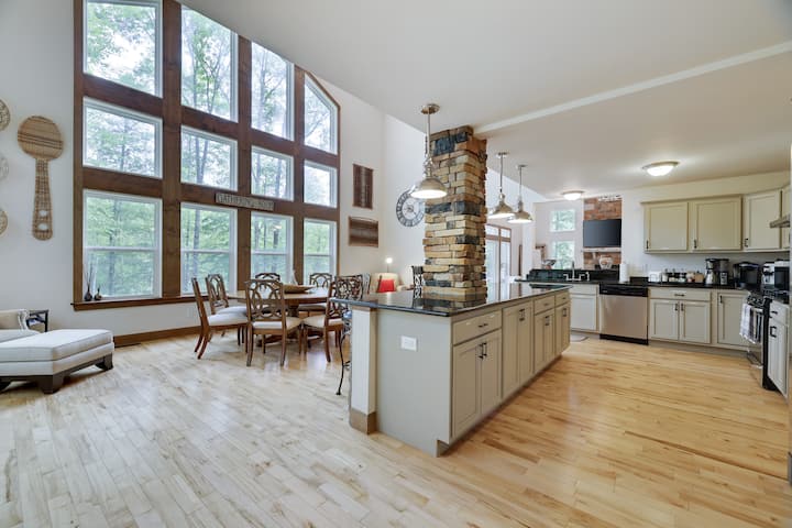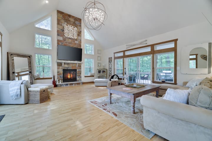 Ova prekrasna planinska kuća s 5 spavaćih soba/4 kupaonice smještena je samo nekoliko minuta hoda do skijališta Ski Big Bear, 2 bazena, mini golfa, tržnice Masthope Market, Summit bara i roštilja i još mnogo toga! Sa širokim otvorenim tlocrtom, potpuno završenom u donjoj etaži obiteljskoj sobi/podrumu, 2 glavna apartmana, visokim nadsvođenim stropovima s tonom prirodnog svjetla u velikom dnevnom boravku I kuhinji/blagovaonici, 2 spavaće sobe na donjoj etaži, 2 spavaće sobe na glavnoj etaži i spavaćoj sobi na gornjoj etaži, imat ćete mjesta za grupe svih veličina! Mnogo toga možete istražiti u srcu planina Pocono. Zajednica Masthope Mountain s punim sadržajima.