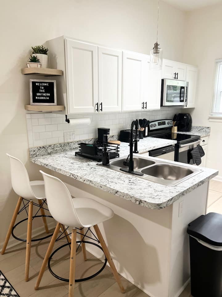 Zakoračite u skrivenu oazu okruženu drvećem i pogledom na obalu. Stan se nalazi na 1. katu s privatnim trijemom s pogledom na 200 godina staro stablo Magnolia. Visoki prozori čine prostor svijetlim i prozračnim te vam pružaju slikovit pogled na vodu iz stražnje spavaće sobe. Ovaj smještaj ima udoban namještaj kako biste se osjećali kao kod kuće.
