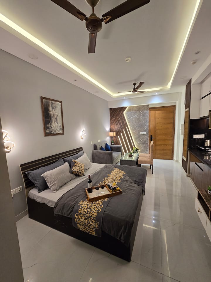 Dobro došli u svoje zavodljivo utočište u srcu Noide – gdje sivi tonovi nisu samo umirujući, već i primamljivi. Bilo da ste par koji želi nešto drugačije, putnik koji putuje sam i traži udobnost s posebnim detaljima ili samo netko tko uživa u malo luksuza uz kasnonoćni užitak. Ovaj je prostor spreman za goste.