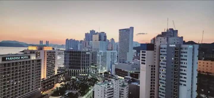 #B21#3 sobe#48 pyeong#1 min do plaže Haeundae#penthouse s prekrasnim noćnim pogledom#5 kreveta.2 spavaće sobe.2 toaleta#mogućnost samostalnog kuhanja
