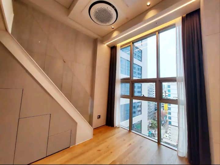 * Ovo je stan s visinom poda od 4,5 m i pruža vam elegantnu atmosferu.