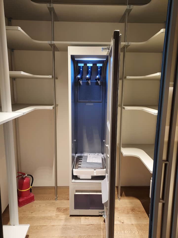 Luksuzni stan💟 s garderobom, perilicom posuđa, stilom (perilica za odjeću), sušilicom, perilicom za rublje, mikrovalnom pećnicom, lukom, tosterom, kuhalom za vodu, televizorom s besplatnim Netflixom, pročišćivačem zraka, kaučem, ventilatorom bez krila, sklopivim stolom za blagovanje, stolicama, stolom za sjedenje, sušilom za kosu, bežičnim internetom itd.