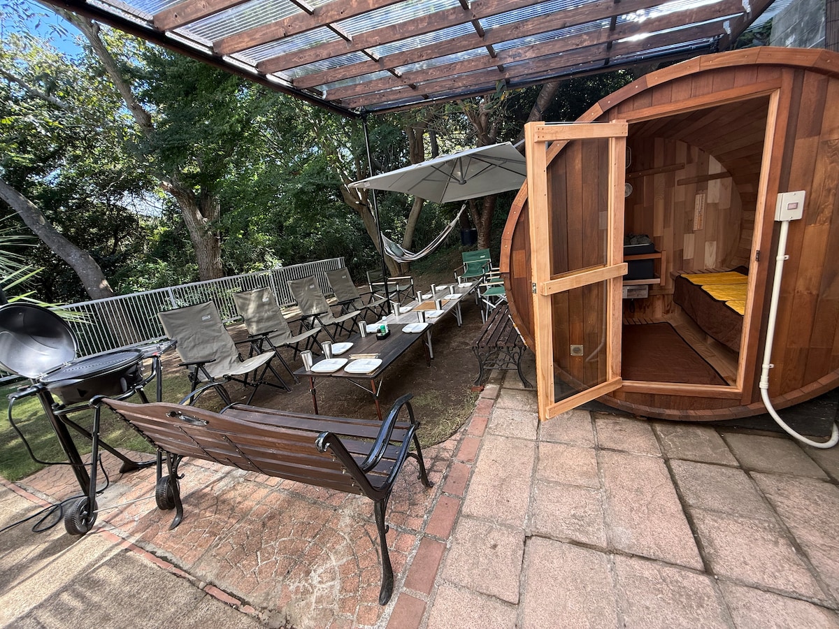 Krenimo u lov na blago. ” Uživajte u putovanju kako biste se osjećali kao Showa moderno u iznajmljenom smještaju s renoviranjem prvoklasnog arhitekta. S pogledom na Izu Oshima iza horizonta, čvrstu i robusnu konstrukciju Hiraike. To je vila iz 1960-ih izgrađena na velikom brdu cusnoki. Yamo 's First Inn, otvoren u srpnju 2022., ponovno otkriva vrijednost stvari koje su prolazile kroz vrijeme kroz putovanje na temelju stare kuće i pruža udobnost da je sami koristite. 2LDK · 67 m2 smještaja, 400 m2 vrtova u potpunosti se iznajmljuje. Kava se skuhala s vintage pločama i grahom iz lokalnog pekare.Privatni sat joge (nije obavezno).Provedite opuštajući odmor u dizajnerskom prostoru.Također možete večerati na trgu roštilja s pogledom na more. Za sve one koji su zainteresirani za renoviranje drva. U vrtu, koji je pun ekspresivnih oblika i oblika, pojavljuju se stijene lave, a možete uživati u prirodi poput Izua koja se sastoji od vulkana. Pogledajte more s kauča pored kauča koji se nalazi pored prozora. 14 minuta pješice ili 5 minuta taksijem od stanice Izukogen na liniji Izukyuko. [Ograničeno na jednu grupu dnevno] 1 do 5 osoba
