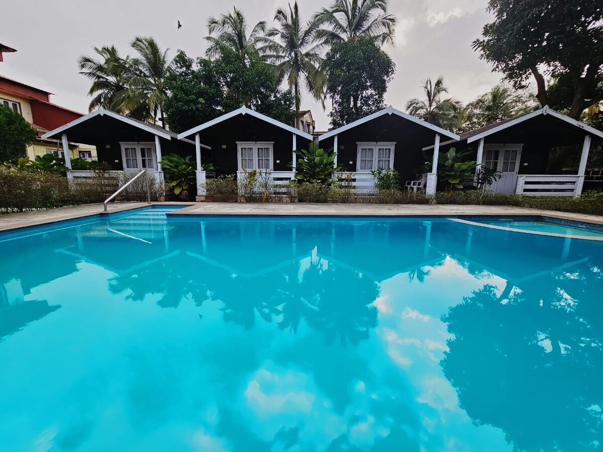 Ovo udobno skrovište spaja rustikalni šarm s modernim sadržajima. Potpuno je klimatizirana i ima kupaonicu u sobi, a nalazi se u uređenom vrtu koji odaje dojam privatnosti i mira. Zajednički bazen udaljen je samo nekoliko koraka, idealan za lijen poslijepodne, dok je plaža Colva udaljena samo nekoliko minuta od vaših vrata. Uživajte u mirnom i praktično smještenom odmorištu u samom srcu Južnog Goa.