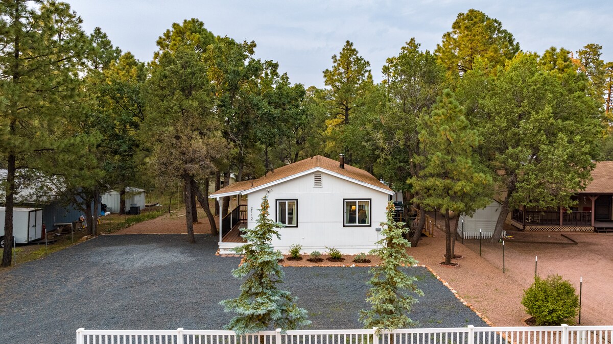 Odsjednite u ruralnoj, udobnoj brvnari samo 30 minuta južno od Route 66. Okamenjena šuma, lokalna jezera, potoci i White Mountains udaljeni su samo nekoliko minuta vožnje. Smještena među borovima, ova privatna gostinjska kuća na jednoj razini za 2 osobe (plus 1 beba) nudi udobnost, privatnost i okus prirode. Vaš pas od 30 funti ili manje je dobrodošao i uživat će u ograđenom dvorištu. Radi lakšeg snalaženja na raspolaganju su vam mikrovalna pećnica, frig, Keurig, toster i vanjska rešetka.